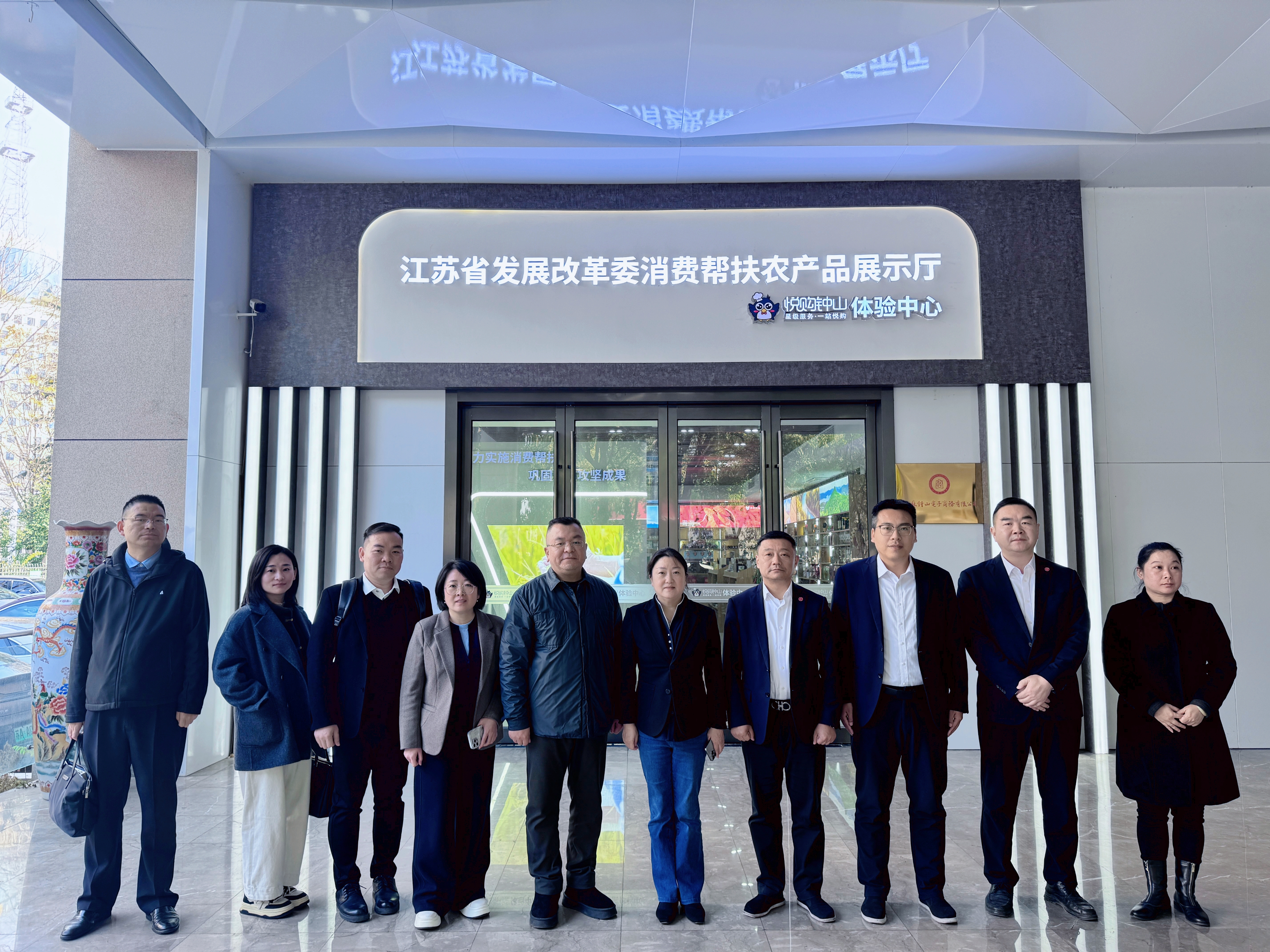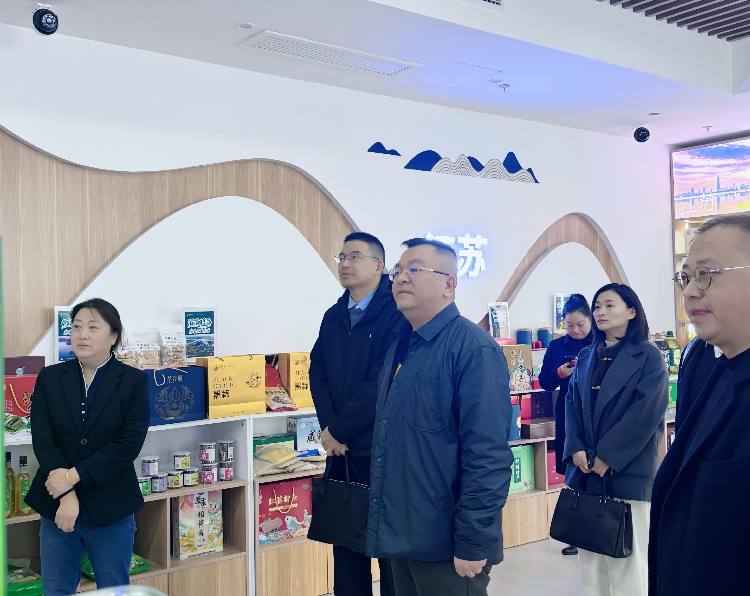座談前,大家參觀了江蘇省發(fā)展改革委消費(fèi)幫扶農(nóng)產(chǎn)品展示廳悅購鐘山體驗(yàn)中心。展廳由江蘇鐘山賓館集團(tuán)有限公司與江蘇省發(fā)改委聯(lián)合打造,集展示、體驗(yàn)、銷售、洽談?dòng)谝惑w,設(shè)有農(nóng)產(chǎn)品展示區(qū)、云上專區(qū)、品鑒區(qū)及直播區(qū),通過“線上+線下”融合,為東西部農(nóng)產(chǎn)品搭建直通長(zhǎng)三角市場(chǎng)橋梁和紐帶。