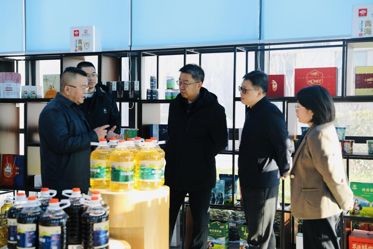 座談前,大家參觀了位于新立訊總部一層正在籌建的“東西部(蘇青)協作農產品展銷中心”,展廳由青海農林牧商品交易中心與新立訊精心策劃設計,包含青海(海南州、西寧市、海東市等地州)農特產品展廳以及即將陳列展示的手工藝+非遺文創展廳,展銷中心集展示、銷售、交易及洽談功能,內設 “東產西送 西產入東”農產數字大屏,精選展示青海“青品好物+西部優選”系列產品:藍雀山、羊羔花等牦牛肉、藏羊肉、湟魚菜籽油、鎖鮮枸杞、雪山牦牛奶、青海湖純牛奶、冬蟲夏草等高原特色農產,系統展示新立訊與各地方政府聯建運營的青海、華東、川藏農產交易中心實時滾動的農產交易數據。