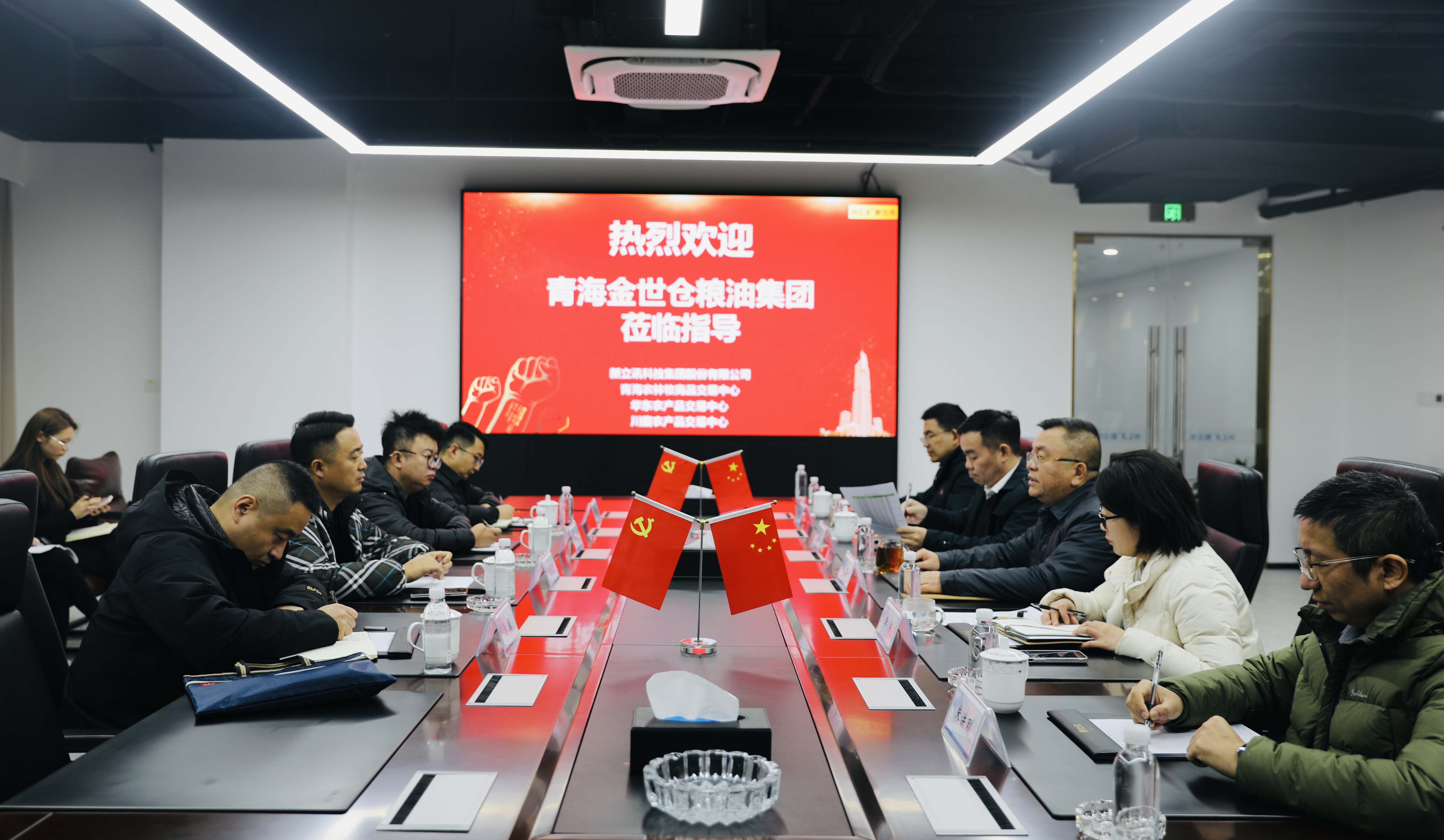 2026年1月25日,青海金世倉糧油集團(tuán)董事長趙明德攜集團(tuán)常務(wù)副總經(jīng)理李威、財(cái)務(wù)總監(jiān)李忠皓、銷售總經(jīng)理湯曉東一行蒞臨新立訊科技集團(tuán)總部調(diào)研。新立訊科技集團(tuán)董事長(兼青海、華東、川藏農(nóng)產(chǎn)品交易中心董事長)毛霖、常務(wù)副總經(jīng)理李偉、董事長助理(兼農(nóng)聯(lián)網(wǎng)絡(luò)總經(jīng)理、青海華東交易中心副總經(jīng)理)楊慶慶及集團(tuán)財(cái)務(wù)、風(fēng)控負(fù)責(zé)人與農(nóng)產(chǎn)業(yè)互聯(lián)網(wǎng)相關(guān)負(fù)責(zé)人等陪同調(diào)研并座談。