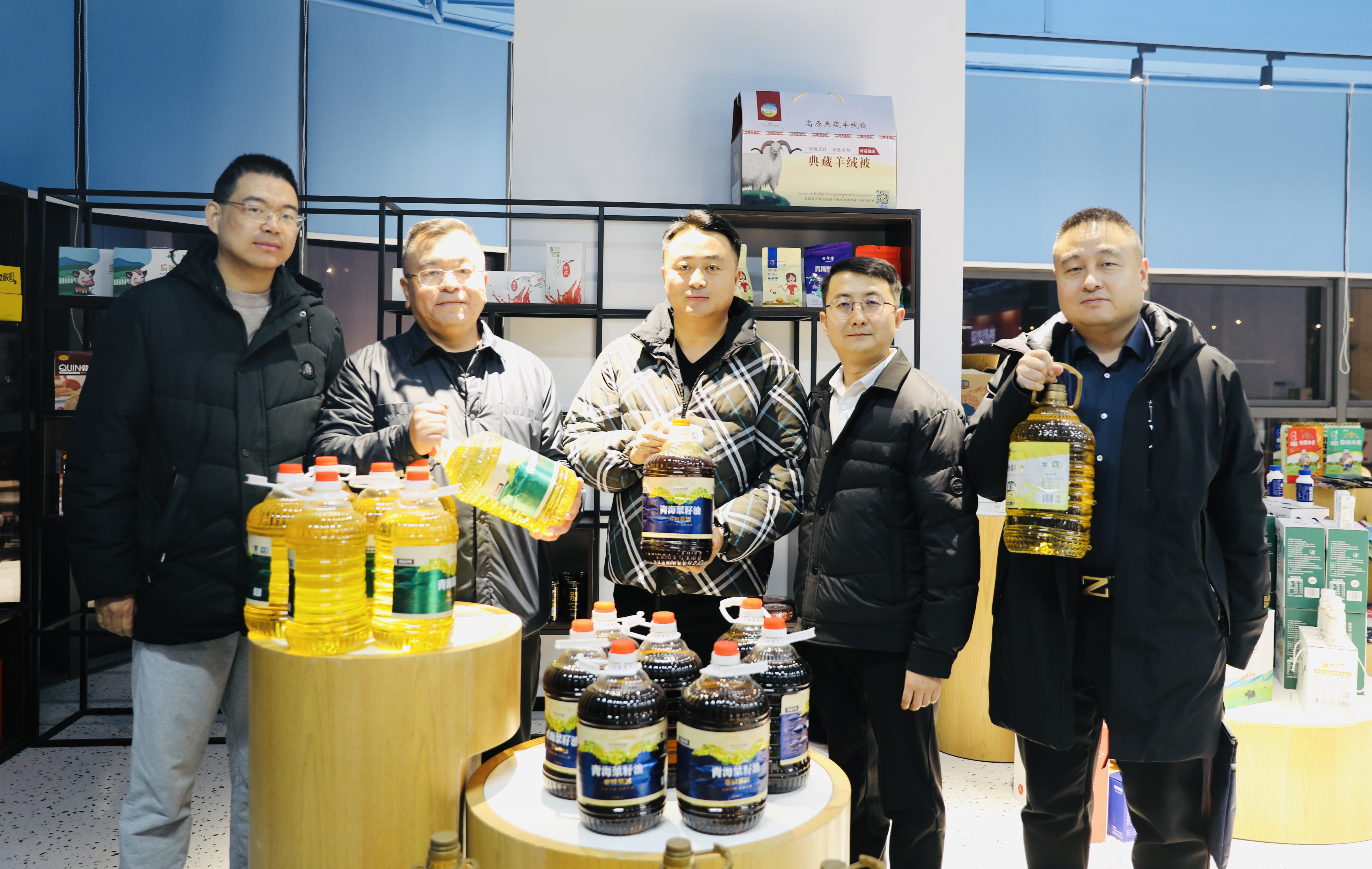 座談結(jié)束后,集體參觀了金世倉位于12樓、目前處于裝修階段的辦公場所和位于新立訊總部一層正在籌建的“東西部(蘇青)協(xié)作農(nóng)產(chǎn)品展銷中心”,展示了青海“青品好物+西部優(yōu)選”系列產(chǎn)品:藍(lán)雀山、羊羔花、牦牛肉、藏羊肉、湟魚菜籽油、鎖鮮枸杞、雪山牦牛奶、青海湖純牛奶、冬蟲夏草等高原特色農(nóng)產(chǎn),在“東產(chǎn)西送 西產(chǎn)入東”農(nóng)產(chǎn)交易數(shù)字大屏上,實(shí)時(shí)顯示青海、華東、川藏農(nóng)產(chǎn)交易中心農(nóng)產(chǎn)交易實(shí)時(shí)數(shù)據(jù)信息。