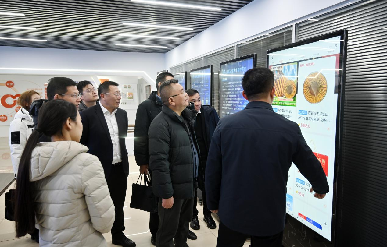 2026年1月26日,為持續深化落實蘇青兩省省長調研青海農林牧商品交易中心時指示精神,在江蘇援青工作隊及徐州工作組協調下,徐州市港務區管委會副主任、海南州興海縣副書記、副縣長杜昆鵬,新立訊科技集團董事長(兼青海交易中心董事長)毛霖,海南州興??h發改工信局副局長李東陽,董事長助理(兼青海交易中心副總經理)楊慶慶,電商總監李積鑫等赴徐州報業傳媒集團調研會商,與徐州報業傳媒集團黨委書記、社長盧波,徐州報業傳媒集團黨委委員、副總編輯蔣昌一,徐州優品購電子商務有限公司副總經理趙培、房之翔開展“青貨入徐”專項業務對接會。