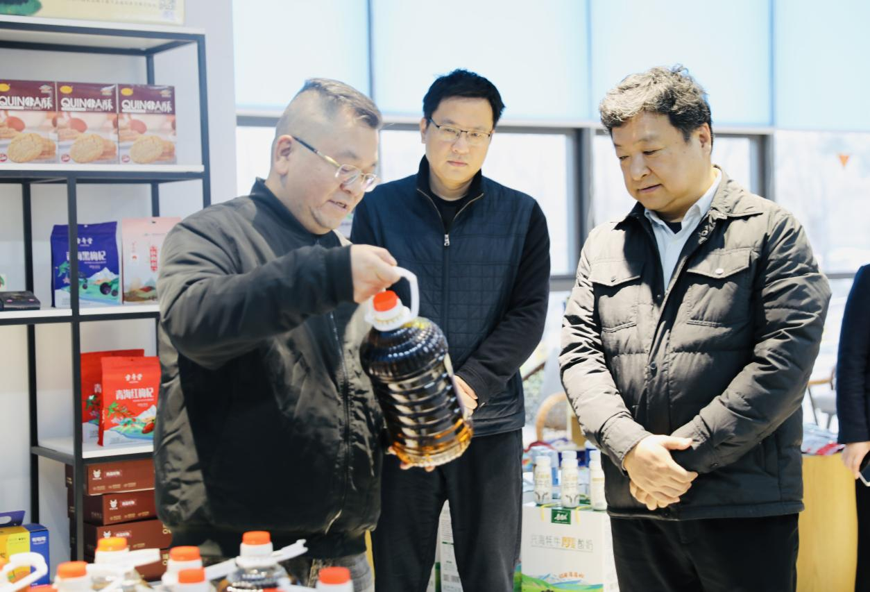 座談前,大家參觀了位于新立訊總部一層正在籌建的“東西部(蘇青)協(xié)作農(nóng)產(chǎn)品展銷中心”,集中展示青海“青品好物+西部優(yōu)選”系列產(chǎn)品:藍(lán)雀山、羊羔花、牦牛肉、藏羊肉、湟魚菜籽油、雪山牦牛奶、青海湖純牛奶、冬蟲夏草、沙棘等高原特色農(nóng)產(chǎn)。