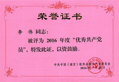 就在6月5日剛獲得“雨花有為青年”提名獎(jiǎng)的我司李偉同志近日再次受到南京市雨花臺區(qū)表彰,被中共中國(南京)軟件谷軟件文化產(chǎn)業(yè)委員會評為2016年“優(yōu)秀共產(chǎn)黨員”。