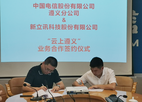 2020年6月24日,新立訊科技股份有限公司與中國電信股份有限公司遵義分公司簽署“云上遵義”業務合作協議。中國電信遵義分公司黨組成員、副總經理任飛,大數據運營部總經理劉犁,政企客戶部副總經理朱俊,新立訊副總經理余治、張太江出席簽約儀式。