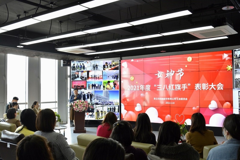 為豐富新立訊女職工的文化生活,表彰先進,增強公司凝聚力,在第112個“三八”國際勞動婦女節來臨之際,新立訊黨支部及工會委員會在總部隆重召開三八國際婦女節表彰大會,大會由新立訊監事會主席、工會主席王宗蘭主持。