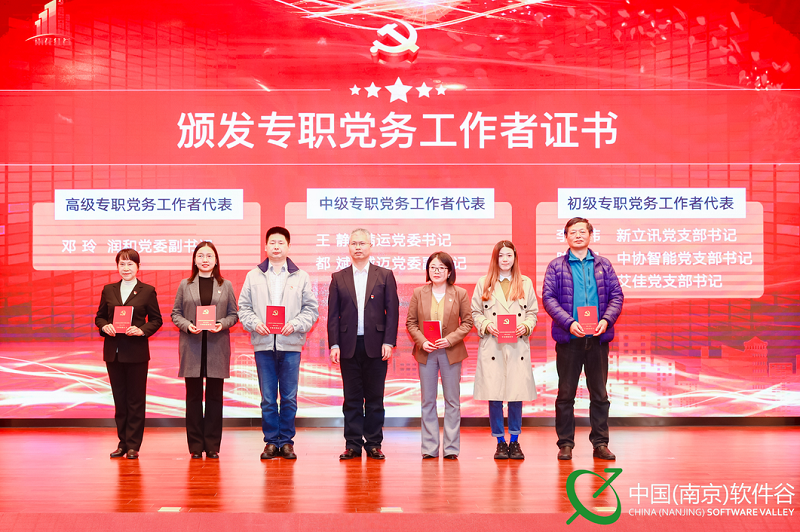 雨花臺區(qū)委組織部常務(wù)副部長夏風為“兩新”組織黨務(wù)工作者代表頒發(fā)證書,新立訊黨支部書記李偉榮獲“初級專職黨務(wù)工作者代表”稱號。
