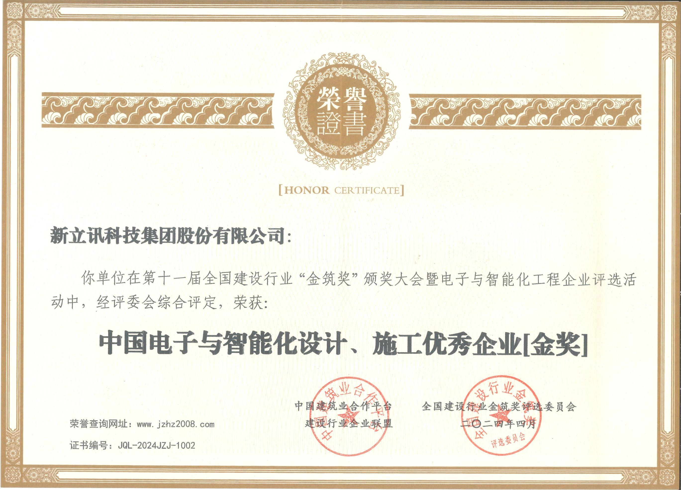 “中國電子與智能化設計、施工優(yōu)秀企業(yè)金獎”是對新立訊科技集團在電子與智能化領域的杰出貢獻的肯定。作為OBO信息服務商,新立訊在DICT(多融合數據集成)與農產業(yè)互聯(lián)網交易平臺業(yè)務方面有著深厚的積累和豐富的經驗,為客戶提供了一系列高效、智能的解決方案,幫助客戶實現(xiàn)業(yè)務的快速發(fā)展和數字化轉型。同時,新立訊還榮獲“全國優(yōu)質工程項目質量獎”,是對新立訊在工程項目質量管控方面的高度認可。新立訊始終堅持“質量第一、客戶至上”的原則,以嚴格的質量管理體系和精湛的技術實力,確保每一個項目的質量達到行業(yè)領先水平。